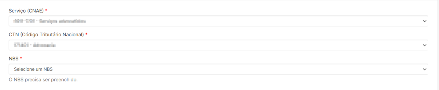 NBS (Nomenclatura Brasileira de Serviços): É um código utilizado em todo o Brasil para identificar serviços. Assim como os demais campos, selecione o código que mais se encaixa no serviço realizado.
