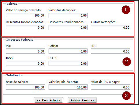 Passo 4: Deverá ser informado na nota fiscal o valor total do serviço prestado.
