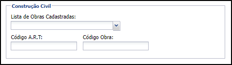 Passo 3: A aba “Construção Civil” só deve ser preenchida em atividades correlacionadas ao serviço de construção, onde é obrigatório possuir o código da obra.