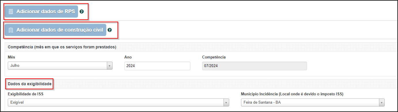 Passo 3: O campo “Adicionar dados de RPS” somente deverão ser preenchidos quando se tratar da geração de uma nota referente a recibo provisório já emitido; quando a nota fiscal for retroativa.