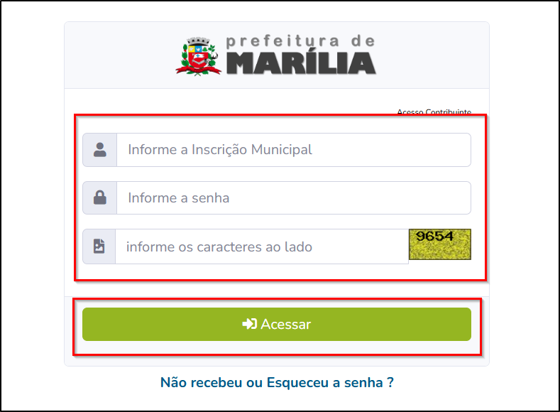 Inicialmente, deve-se efetuar o login no portal da Prefeitura de Marília.