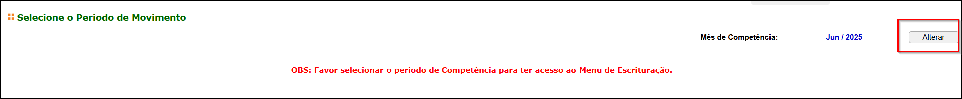 Passo 3: Após clicar em "Movimento", aparecerá uma nova tela onde deve clicar em "Alterar" e informar a competência que deseja consultar as notas fiscais.