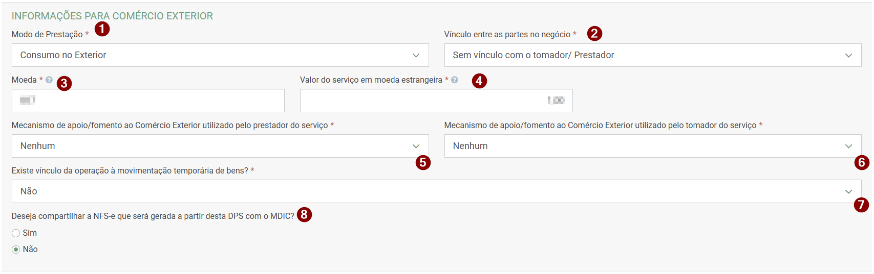 Passo 10: Nos campos de "informações para comércio do exterior", coloque as seguintes informações:
