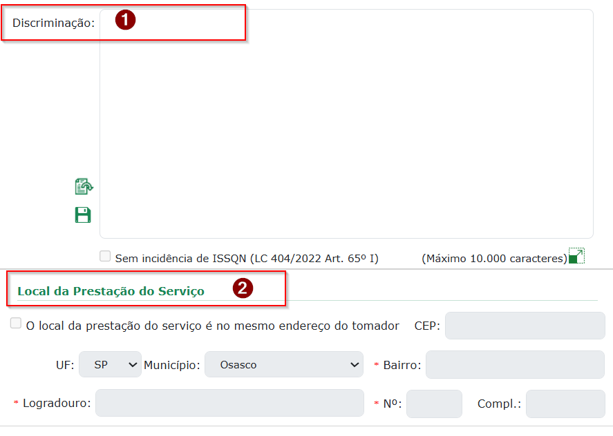 No campo "Local da Prestação do Serviço" Você deve conferir o Município de incidência do ISSQN (que normalmente será o seu município).