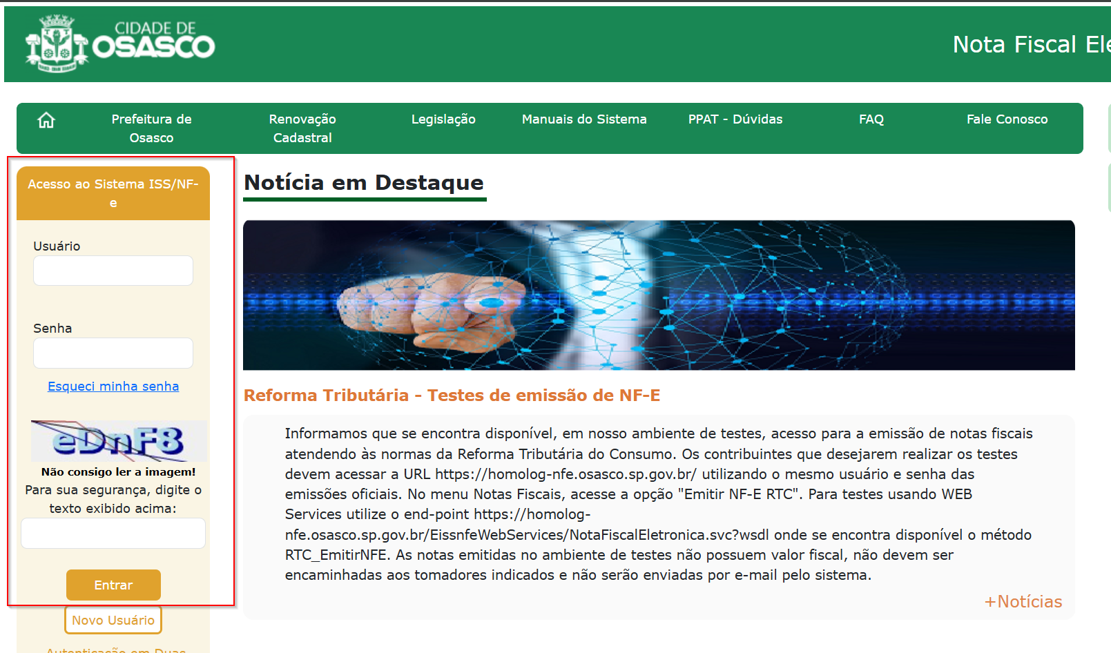 Inicialmente, deve-se efetuar o login no portal da prefeitura de Osasco.