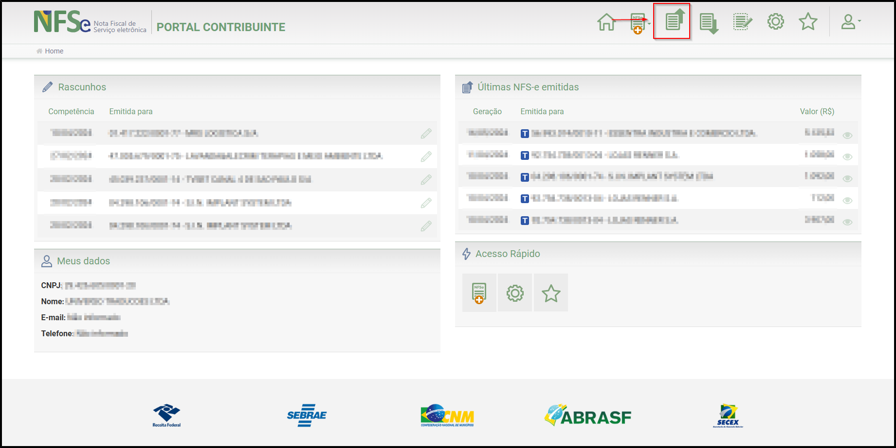 Passo 2: Selecione o ícone de "Notas emitidas", conforme a imagem.