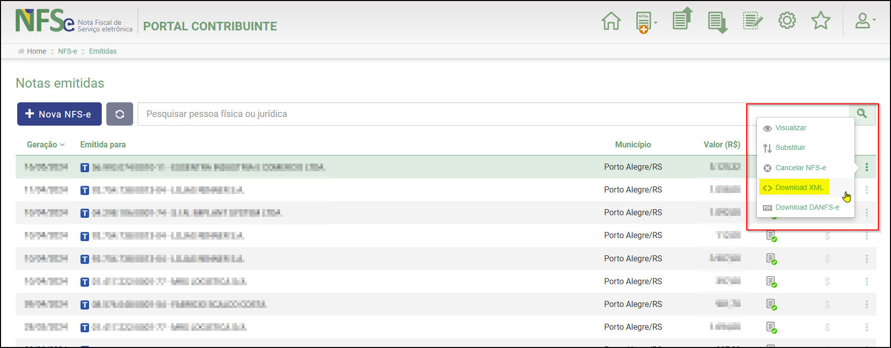 Passo 3: Ao lado direito, clique nos 3 pontos e em "Download XML".