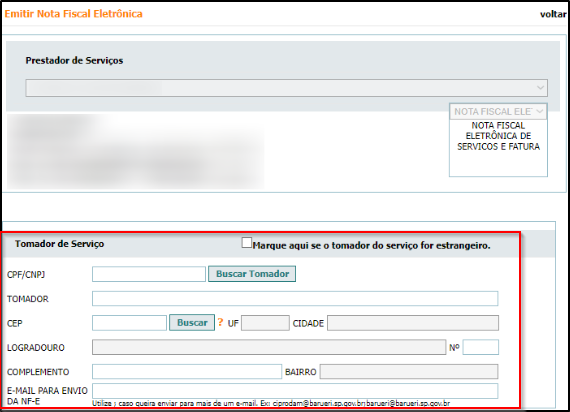 Passo 3: Inicialmente, deve-se preencher os dados do tomador.