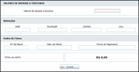 Se a empresa utiliza a fatura, poderá preencher o campo “Dados da Fatura” com número, valor e forma de pagamento. Após isso, clique em “Emitir”.
